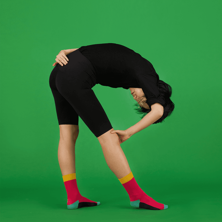 “Respect was the word that came to mind when I was posing for letter R. I feel like I understand the word respect a bit more, a bit deeper, when I was posing for it, because I had to bend over to hold up my neck and my head—almost like holding up my ego. And for my lower body, I have to keep my legs like this [apart] instead of in parallel, and I think keeping it like this means being critical. Those are the two important parts of respect—first, holding back our ego, and second, being critical at the same time.”